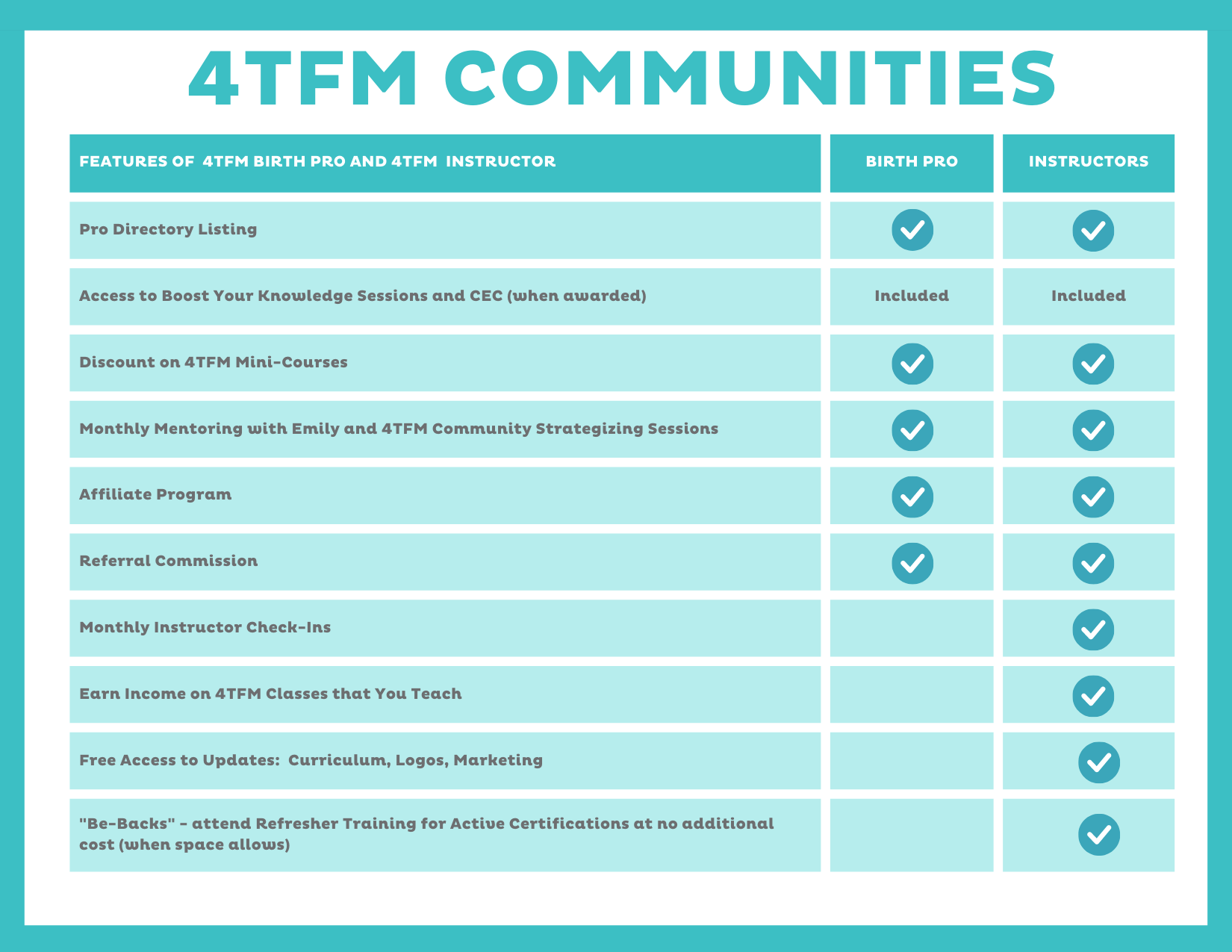 If you are interested in Doula Coaching, I do offer this service on a one-to-one basis. OR consider joining our 4TFM Birth Pro Community where you will learn all about these things and so much more from other professionals, too.