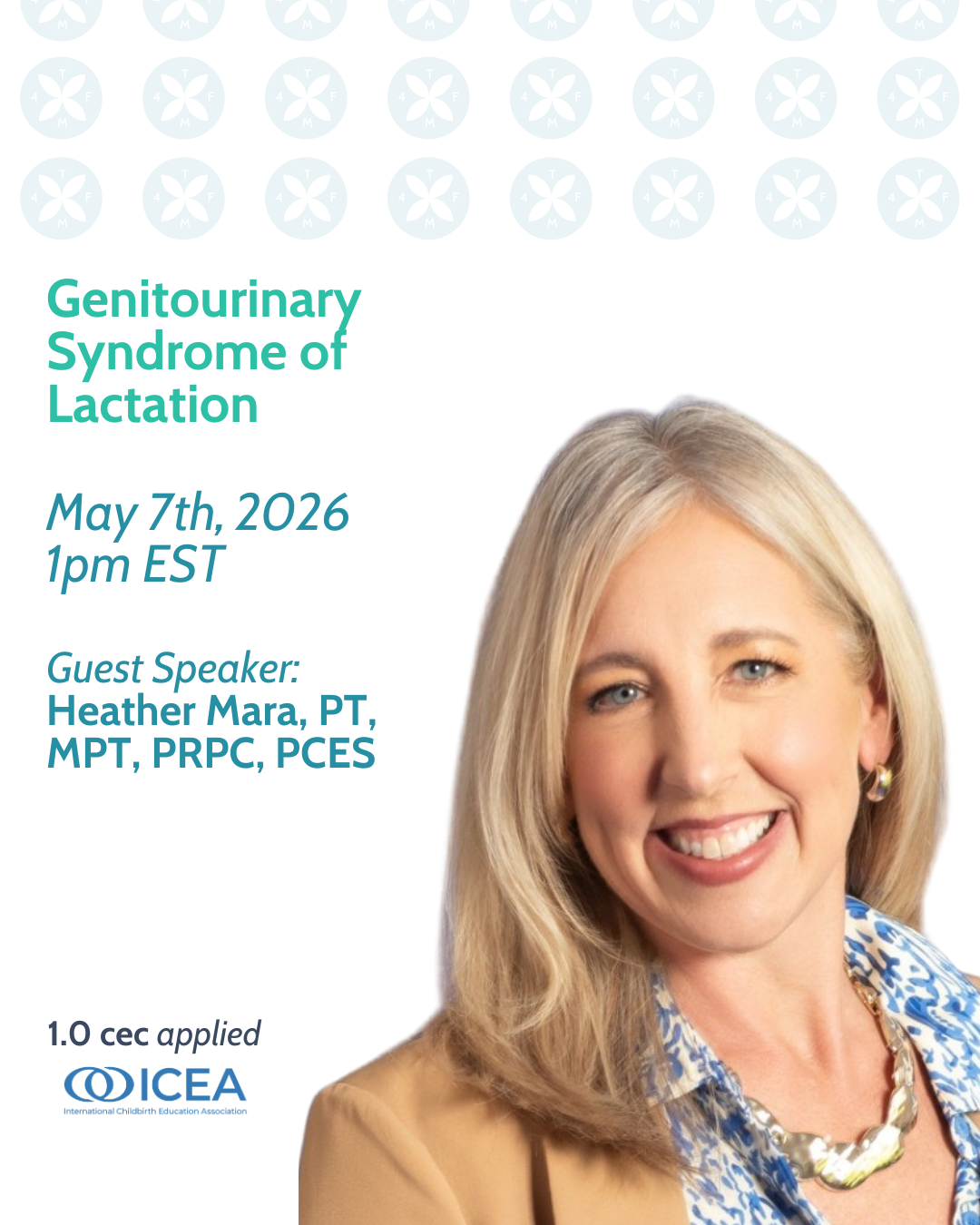 May 7, 2026 at 1pm | Heather Marra, PT, MPT, PRPC, PCES is a licensed pelvic health physical therapist, speaker, and author with more than 25 years of clinical experience. As the owner of One Simple Step, she specializes in helping women restore connection and healing through an integrated approach that addresses the physical, emotional, and spiritual aspects of wellness.